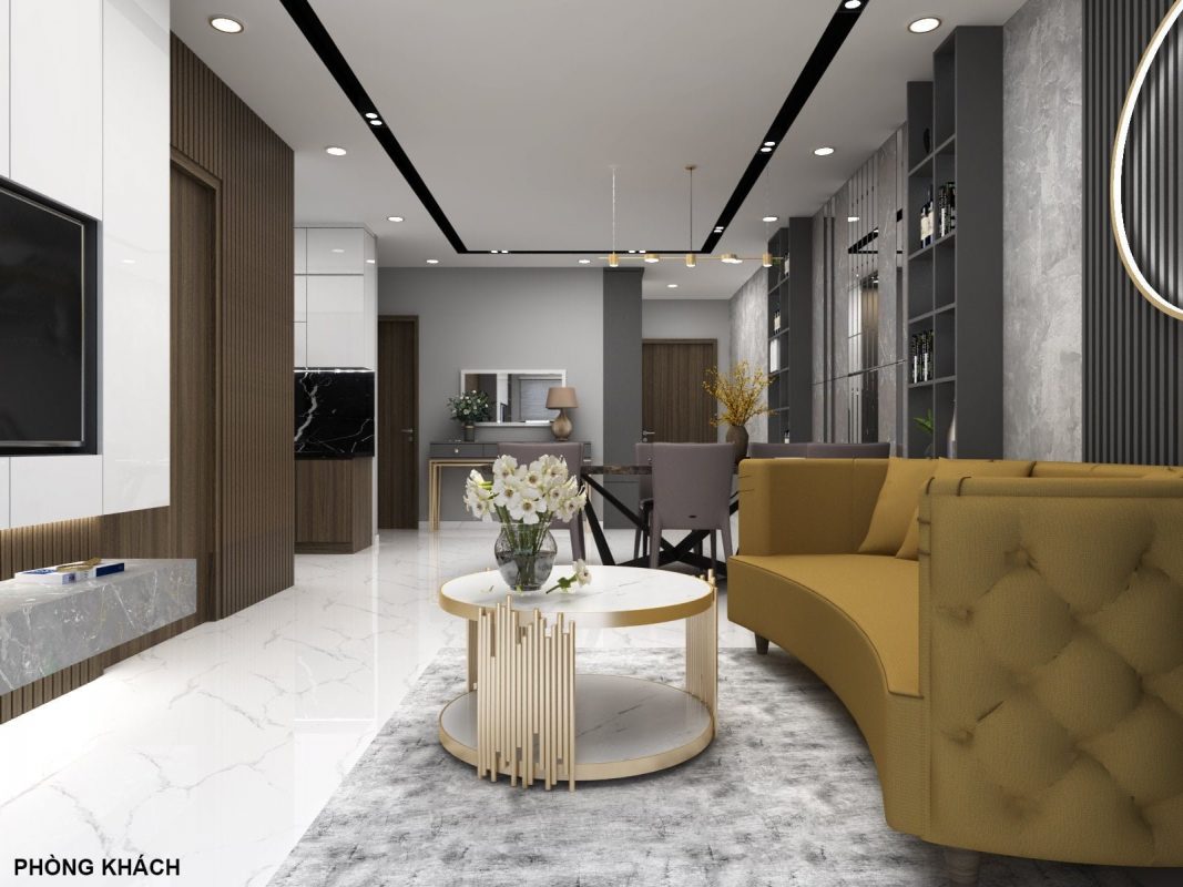 Khu vực phòng khách được trang trí đầy đủ, tránh không để không gian bị thoáng đãng cũng như bị ngộp. Kệ vách tivi đang trang trí sơ qua nhằm tạo điểm nhấn hơn cho căn hộ.